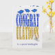 A graduação em 2025 em azul e ouro é feita em cores de fundo branco com um diploma branco para neta. O texto é editável.