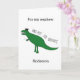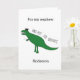 Um dinossauro engraçado, um t-rex para ser exato, usando um chapéu de formatura e segurando um diploma. Este é um cartão de graduação do jardim de infância para um sobrinho que ama dinossauros! Você pode facilmente personalizar a frente deste cartão do t-rex com o nome dele. Dentro, está escrito "Yay, você conseguiu!