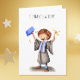 Cartão de graduação personalizado de excelente com ilustração de um formando que comemora a obtenção do diploma. Personalize o texto com sua própria mensagem. Ilustrada e projetada por Patricia Alvarez.