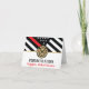 Este design apresenta uma bandeira de bombeiros com listras pretas e brancas, e uma fina faixa vermelha também. "Parabéns" e o crachá de bombeiro ficam acima do nome do bombeiro graduador. Esta design também funciona como excelente para se aposentarem bombeiros, tenentes ou chefes. Celebre em estilo!