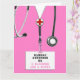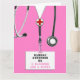 Cartão de formatura de enfermagem com esfregões de hospital rosa. Para personalizar o texto de edição para adicionar o nome do formando de enfermagem.