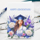 Esta trabalho de arte surpreendente gerada por IA apresentando uma enfermeira orgulhosa vestindo um boné de formatura e um estetoscópio ao redor do pescoço. Envolvido por elegantes irises e rosas brancas, esta design simboliza lindamente as qualidades de uma enfermeira.