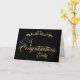 Placa de graduação do Formando para Parabéns Elegantes. Cartão de graduação com boné de formatura, script moderno de ouro e ornamento de ouro. Parabéns e um nome do formando no lado frontal - personalize com seu nome. Personalize o texto na dentro da placa ou apague-a.