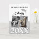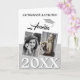 Cartão Rustic Formando 2 Photo Parabéns Graduation. Boné de formatura e texto na frente. Cinza russa. Adicione 2 fotos na frente - você pode adicionar fotos antes e depois. Adicione seu dentro de mensagem ou apague-o.