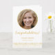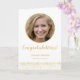 Personalize este simples cartão de graduação de na moda com sua foto e seu texto personalizado. O design apresenta uma fotografia personalizada com uma moldura de ouro redonda sobre um fundo preto clássico com texto em ouro e branco com um confete branco dourado complementar. Adicione a sua mensagem especial ao dentro do formando da placa. Fácil de personalizar fotografia e texto. Parabéns!