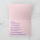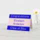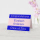Frente: Este cartão de graduação rosa pálido e azul diz 'Parabéns no topo. Há texto para exibição para o nome do formando no meio. "Classe de 2022" está no fundo. Dentro: Há texto de exibição azul para o nome do formando, uma mensagem inspiracional e texto de exibição para os nomes do remetente.