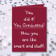 "Você conseguiu! Você se formou! Agora você é esperto e tal. Parabéns!" Engraçado, humorístico, hilário, divertido, vermelho / burgundy, personalizável, cartão de desejos de formatura. Cartão de saudação divertido para crianças, crianças, adolescentes, estudantes, formandos de jardim de infância, segundo grau médio ou médio, universidade ou universidade. Excelente para felicitar formandos de todas as idades.