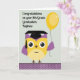 Cartão de graduação do 8º ano para seu sobrinho com uma coruja fofa segurando um grande balão amarelo.