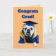 Celebre o formando na sua vida com este vestido de Bulldog em boné de formatura e vestido. Você pode escolher personalizar a mensagem da maneira que quiser.