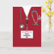 Design de cartão de formatura de enfermeiro personalizado com esfregões de hospital vermelho. Editar texto para adicionar nome.