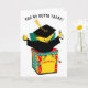 Cartão de graduação criativo com desenho animado e mensagem de formando. Editar texto para personalizar.