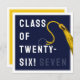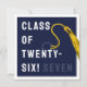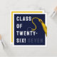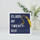 Cartão de graduação criativo para formando Classe '25 com boné marinho azul formando, fita-dourada e linha engraçada. Para personalizar editar texto para adicionar seu nome.