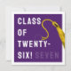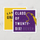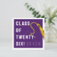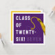Cartão de graduação criativo para a Classe de formando '25 com boné de formando roxo, fita-dourada e linha engraçada. Para personalizar editar texto para adicionar seu nome.