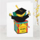 Cartão de graduação criativo que inclui o humor "jack-in-the-box". Editar texto para e nome do ano de classe de formando e mais velho.