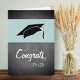 Modern Grata o Cartão de Graduação do Quadro com um Nome de Formando. Cartão de graduação com boné de formatura, texto moderno de tipografia branca Pargrats e um nome do formando na frente - personalize com seu nome. O texto encontra-se sobre um fundo de painéis de cinza moderno e o boné está a azul. Personalize o dentro de texto da placa para atender às suas necessidades.