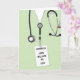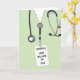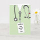 Cartão único de formatura de enfermeiro com esfregões hospitalares para formando escolares de enfermagem. Para personalizar editar texto para adicionar nome.
