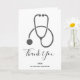 Cartões de agradecimentos de graduação com estetoscópio de cinza colocado sobre fundo preto. Personalize com um nome na frente e uma mensagem no dentro. Na moda elegante design.