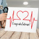 O coração vermelho bateu no impressão do ECG, perfeito para médicos, enfermeiros e qualquer um na indústria de saúde. Personalize adicionando seu nome, negócios ou prática médica, ou escolhendo apenas sua cor de fundo. Excelente para o envio de parabéns após uma escola de enfermagem ou de graduação em medicina, de consultório de medicina, de novos negócios e muito mais. Placa de linha EKG de batimento cardíaco vermelho
