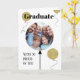 Congratulate your graduate with a big balloon photo card from everyone. The G in graduate is centered on a gold glitter effect balloon with 2 others as design accents. A minimalist way to congratulate the graduate from us.