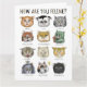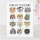 Cartão de cumprimentos com gráfico de sentimentos temático de gato fofo com o trocadilho engraçado "Como você está se sentindo?". Manter o controle de suas emoções pode ser uma tarefa difícil, mas este cartão colorido e fofo de melhoras logo irá lembrá-lo a olhar para dentro e entrar em contato com o espaço em que você está. Lembre-se, sentimentos não são bons ou ruins, eles simplesmente são. Sinta seus sentimentos e escolha como responder a eles. Este cartão seria o presente perfeito para qualquer pessoa interessada em autoconhecimento, saúde mental e bem-estar em geral.