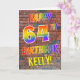 A frente deste design de cartão de saudação, emocionante e divertido, com tema de aniversário, apresenta a mensagem "HAPPY 64TH BIRTHDAY" com letras que têm um arco-íris multicolor como padrão de gradiente, e um nome personalizado amarelo, em um plano de fundo de padrão de parede de tijolos. O olhar é inspirado pelo grafite ou arte de rua desenhada na parede. O dentro apresenta uma mensagem de saudação de aniversário que pode ser personalizada. Um cartão de saudação de aniversário divertido, feliz e personalizado como este pode ser uma forma especial de celebrar o 64º aniversário de alguém. [~Z0000357]