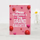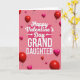 This Valentine's Day card has a soft pastel pink background filled with floating balloons. In the middle, there’s a deep rose-pink rectangle that draws your eye right away. Inside it, the words “Happy Valentine’s Day” appear in smooth white cursive-style lettering across the top. Just below, “GRANDDAUGHTER” is written in white, all-capital letters in a simple sans-serif look. Around the message, red round balloons and shiny fuchsia heart-shaped balloons rise upward with thin, curly silver-white strings. The balloons look glossy, like light is reflecting off them, and they’re spaced out to feel light and airy. It’s a sweet way to show love and closeness, especially for a granddaughter who means a lot 🥰❤️, and it’s a friendly way to share Valentine’s Day sentiments.