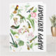 As belas artes botânicas do vintage maravilhoso de pássaros do colibri e de flores tropicais exóticos do habitat na colagem estão neste cartão grande do feliz aniversario. Este cartão fá-los-á sorrir por muito tempo!