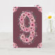 Belo nono aniversário, grande número nove, decorado com adoráveis flores cor-de-água, cor-de-rosa e folhagem verde. Excelente 9º presente de aniversário para sua garotinha por um cartão de saudação único e muito especial.