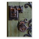 A antiga fechadura de ferro e o cabo do Castelo de Gravensteen, em Gent, na Bélgica, é afixada a uma porta verde de sábio com intrigantes dispositivos de ferro trabalhados à mão. Esta fotografia em detalhe mostra o belo detalhamento. O dentro da área de mensagem da placa é vazio esquerdo, mas você pode personalizá-lo clicando no botão 'Personalizar!' e adicionando seu próprio texto, se desejar. Na dentro à esquerda do cartão lê-se: "Construído por Conde Filipe da Alsácia em 1180, a Gravensteen medieval fica em Gent, Bélgica. Foi a sede da Condessa da Flandres até o século 14. Ao longo dos séculos, também serviu como uma casa de banho, uma prisão e uma fábrica de algodão."