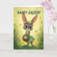 This charming Easter card features an adorable gray baby bunny wearing a floral crown and spring dress, holding a basket of colorful Easter eggs. Set in a glowing meadow filled with butterflies and wildflowers, the artwork blends whimsical, storybook-style charm with bright seasonal warmth. Perfect for kids, families, and anyone who loves sweet, uplifting Easter designs. Printed on premium cardstock for a beautiful holiday keepsake.