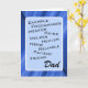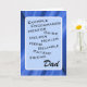 The design features a list of several qualities that a great dad possesses. Colorful blue background. The inside message reaffirms the thought that this is "my Dad." All text (front and inside) is fully changeable with the template. Selecting “Personalize this design” offers you several edit options to easily change the text (wording, plus type font, color, size, position) and to possibly edit the design elements. You may also want to scroll down to the section “Transfer design to a product” for a few suggestions about other items this design can be used on. Simple card, great message.