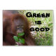 Para fãs de qualquer coisa verde, aqui está o doce Gabel, um de centenas de órfãos orangotaneses na ilha de Borneo, lembrando a todos que ajudar a salvar seu habitat de floresta tropical irá beneficiar nosso planeta Terra também. Orangutanos, uma espécie ameaçada de extinção, são o único macaco excelente que sobrevive na natureza fora de África. O artista doa 100% dos lucros deste cartão para apoiar o trabalho de O.F.I. Fotografado na Indonésia, na ilha de Borneo, Indonésia, por Rebecca Reeder.