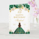 Este cartão de aniversário elegante e glamouroso pode ser personalizado com um nome ou título como filha, neta, sobrinha, amiga, etc. O design apresenta uma bela princesa com cabelo escuro em um vestido de tiara e bola verde. O texto combina o script manuscrito e as fontes sans serif modernas para um aspecto elegante e sofisticado. Os arranjos florais e o confete de ouro criam a mistura perfeita de rústicos e quicos. Gráficos por www.etsy.com/uk/shop/SunflowerDayLove