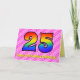 Este alegre e festivo cartão de saudação de aniversário de 25 tem uma frente com um grande número de "25" com um padrão colorido inspirado pelo olhar de um espectro arco-íris, num rosa escuro e rosas claro formas cardíacas com padrão riscado. A frente também apresenta a mensagem "Happy 25 Birthday", e um nome de destinatário personalizado. O dentro apresenta uma mensagem de saudação de aniversário personalizada, ou talvez possa ser apagado e deixado vazio se uma mensagem for escrita manualmente. Um cartão de aniversário personalizado como este pode ser uma forma divertida e feliz de reconhecer o vigésimo quinto aniversário de alguém. [~Z0000418]