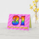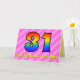 Esta design de 31 anos feliz e festiva tem uma frente com um grande número de "31" com um padrão colorido inspirado pela aparência de um espectro arco-íris, num rosa-escuro e rosas claro com forma de fundo listrada. A frente também apresenta a mensagem "Feliz 31º Aniversário", e um nome de destinatário personalizado. O dentro apresenta uma mensagem de saudação de aniversário personalizada, ou talvez possa ser apagado e deixado o vazio se uma mensagem for escrita manualmente. Um cartão de aniversário personalizável como este pode ser uma maneira divertida e feliz de enviar desejos de aniversário a alguém que comemora seus trinta anos de primeiro aniversário. [~Z0000418]