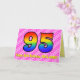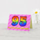Esta feliz e feliz design de 95 anos de saudação de aniversário tem uma frente com um grande número de "95", tendo um padrão colorido inspirado pelo aparecimento de um espectro arco-íris, num rosa escuro e rosa claro formas de coração padrão. A frente também apresenta a mensagem "Feliz 95º aniversário", e um nome de destinatário personalizado. O dentro apresenta uma mensagem de saudação de aniversário personalizada, ou talvez possa ser apagado e deixado o vazio se uma mensagem for escrita manualmente. Um cartão de aniversário personalizável como este pode ser uma forma divertida e feliz de enviar uma mensagem para celebrar o 90.º aniversário de alguém. [~Z0000418]