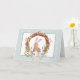 Na frente deste belo cartão de Páscoa está um coelho marrom caprichoso dentro de uma grinalda de estrutura de salgueiro. Na parte inferior da grinalda estão ovos de Páscoa em cores pastéis. Uma moldura de padrão envolve a imagem. Dentro, há três campos de texto personalizáveis em rosa e verde-teal pastel. Faça-o dizer o que você quiser!