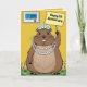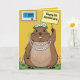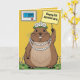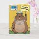Cartão Groundhog segurando sinal amarelo 1rua aniversário