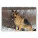 Alsaciano negro e bronzeado na margem de neve de um rio