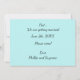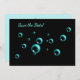 Um design minimalista elegante que apresenta um grupo de bolhas bonito brilhantes azuis contrastando com um fundo preto profundo com a frase: Salve a Data em um azul aqua correspondente. O verso é um azul-oceano claro com modelo de texto que você muda para seus próprios detalhes ou você pode apagar o texto e escrever sua mensagem manualmente no verso. Comprar em massa e salvamento.