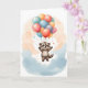 Cartão Guaxinim Adorável em Aquarela com Balões Coloridos