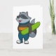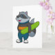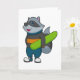 Cartão Guaxinim como Snowboarder com Snowboard