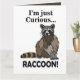 Cartão do Guaxinim Curioso e Divertido, design original de Nisha Prabhu. Alegrar o dia de alguém com nosso cartão do Guaxinim Curioso e Divertido! Este cartão encantador apresenta um guaxinim adorável com sua expressão curiosa característica, tornando-o a escolha perfeita para qualquer ocasião - seja um aniversário, um bilhete de agradecimento ou apenas um oi amigável! As cores vibrantes e o design divertido capturam o charme travesso do guaxinim, garantindo que se destaque e traga sorrisos para quem o recebe. Por dentro, há espaço amplo para sua mensagem pessoal, permitindo que você expresse seus pensamentos e sentimentos com um toque de diversão. Seja você enviando um bilhete para um amigo, familiar ou um entusiasta de guaxinins, este cartão serve como uma forma encantadora de se conectar e compartilhar uma risada.