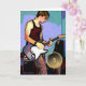 A cor abstrata obstruiu o menino e a sua guitarra. No azul, no verde de mar, e na multi cor. Cartão feito sob encomenda de feliz aniversario.