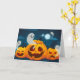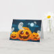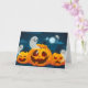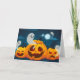 O cartão de saudação é mostrado com um festivo impressão de abóboras assustadoras do Halloween. Personalize este cartão ou comprar como está. Imagens de Ações vecteezy.com