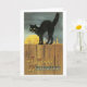 Cartão Halloween antigo, gato preto e lua de Cheio