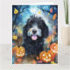 Cartão Halloween Bernedoodle Com Abóboras Assustador