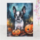 Cartão Halloween Boston Terrier Com Abóboras Assustador