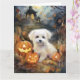 Cartão Halloween Coton De Tulear Com Abóboras Assustador