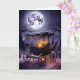 carruagem ornamentado preta com lanternas numa floresta nebulosa sob uma lua de cheio com morcegos voadores e céu estrelado.